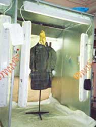 Раздув куклы с помощью вентилятора. Регулируемые зажимы для рукавов.